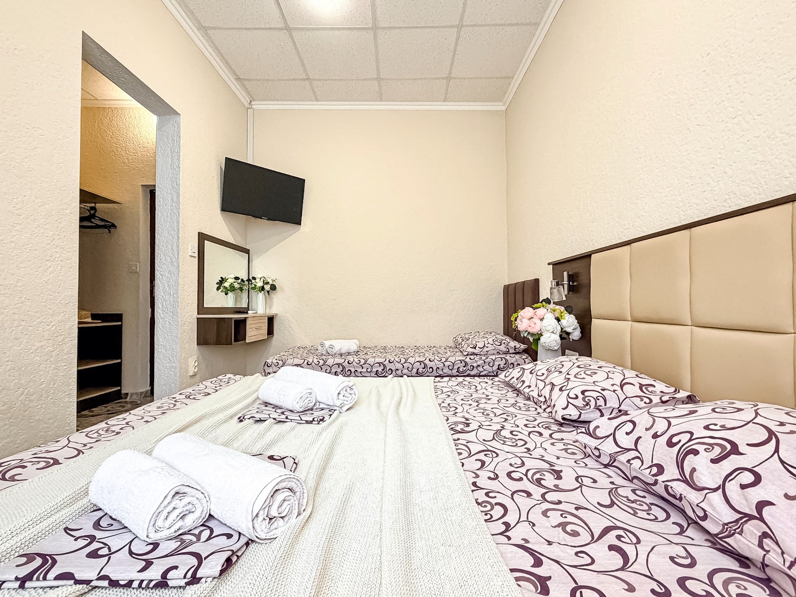 - Современные оборудованные номера: кондиционер, холодильник, телевизор, душ, с/у;