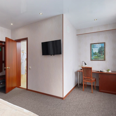 В номере 2 удобных кровати, постельное белье из 100% хлопка, ЖК-телевизор, мини-холодильник, письменный стол, кондиционер, телефон, шторы «блэкаут», современный текстиль, багажница. В ванной комнате – фен, косметические принадлежности (Мыло в инд. упаковке, гель для душа, шампунь). Бесплатный Wi-Fi. Телефон в каждом номере: внутренняя и городская связь.