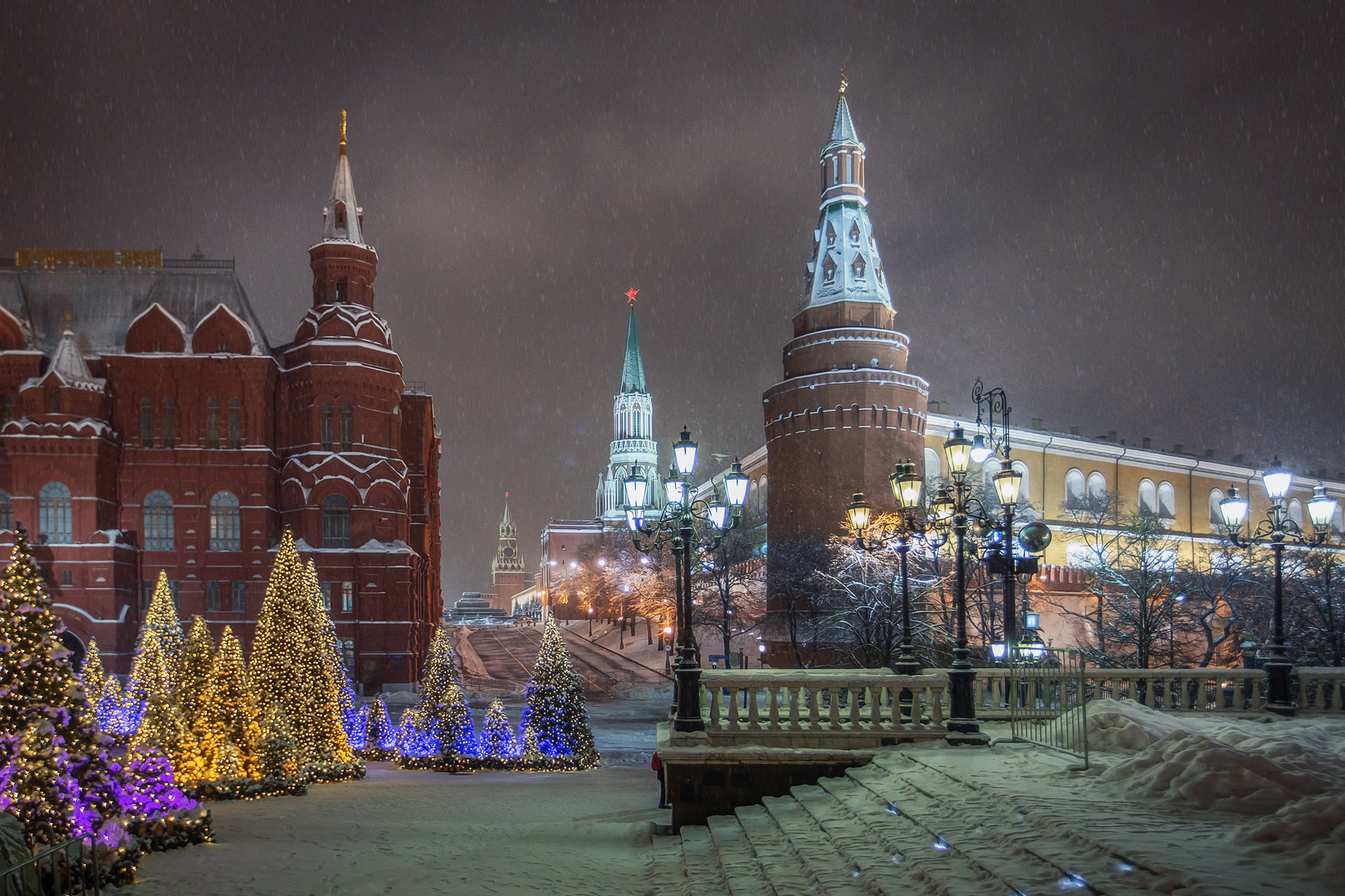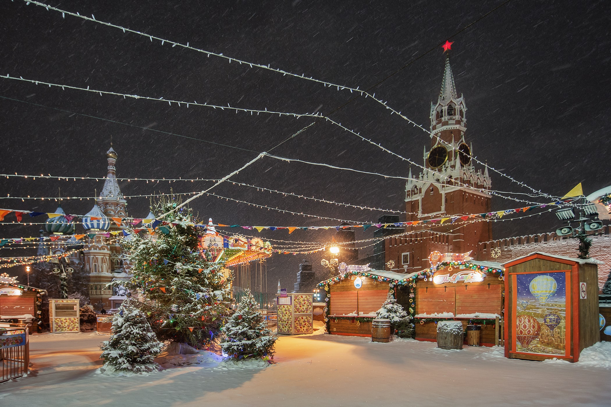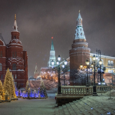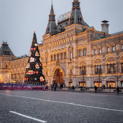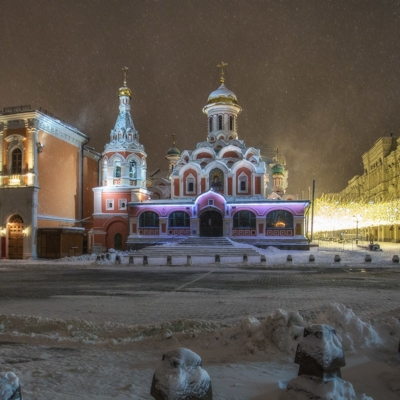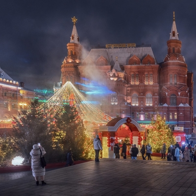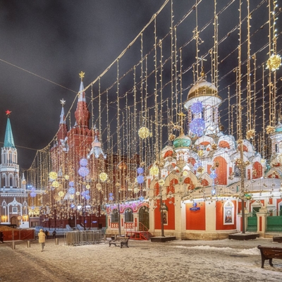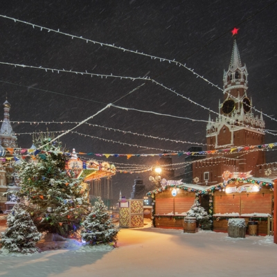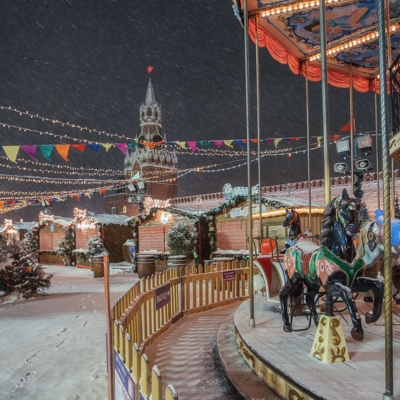 12:00 – Прогулка по Красной площади, где располагаются знаменитый каток, веселые карусели и красочные ярмарочные палатки. Внешний осмотр Собора Василия Блаженного, ГУМа и Московского Кремля.