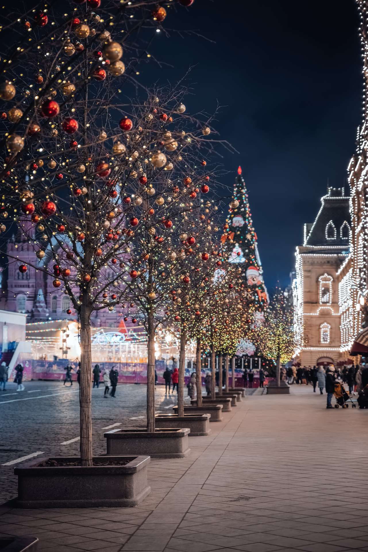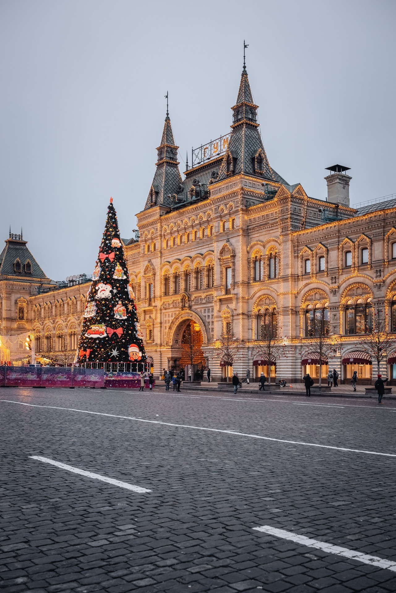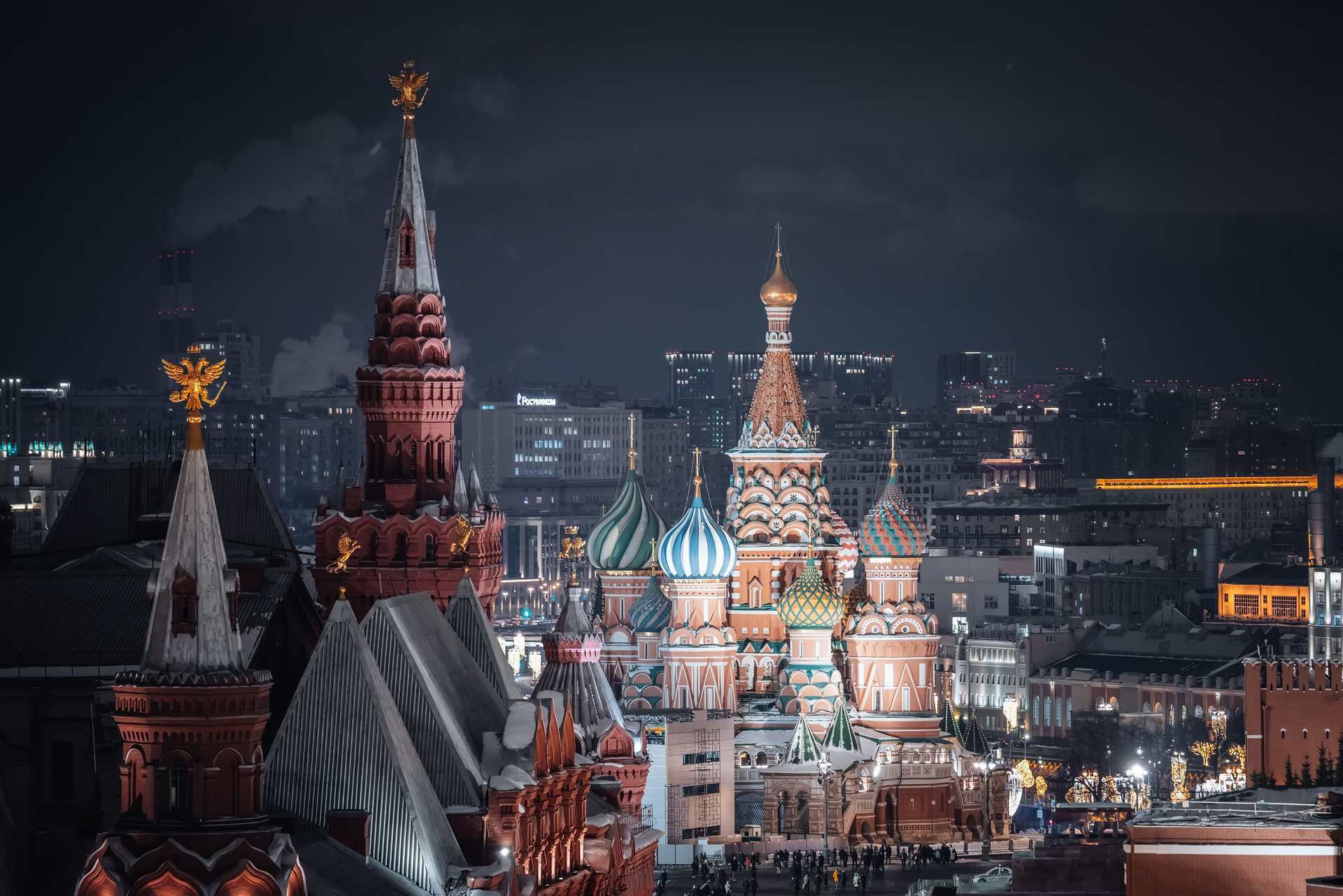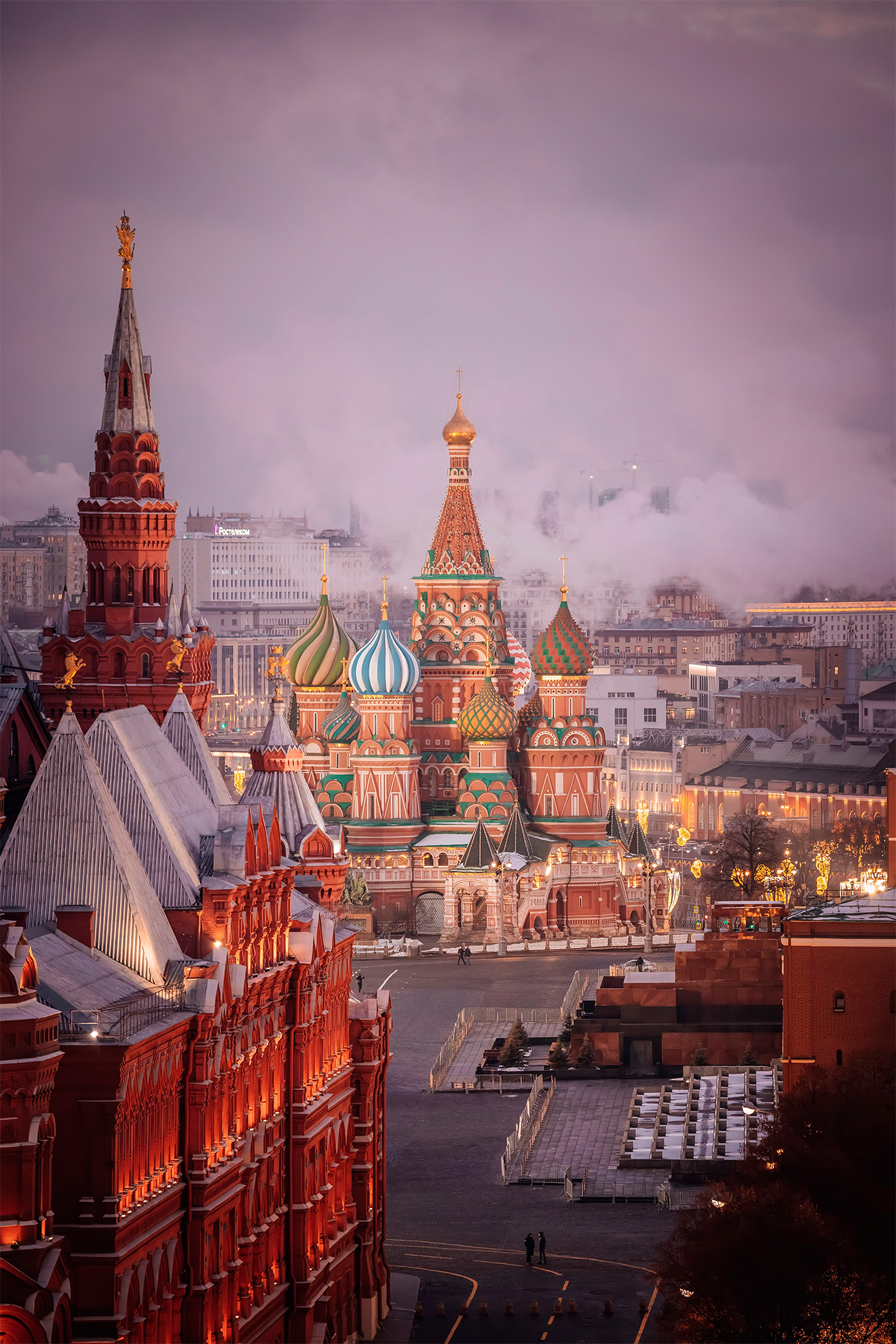 12:00 – Прогулка по Красной площади, где располагаются знаменитый каток, веселые карусели и красочные ярмарочные палатки. Внешний осмотр Собора Василия Блаженного, ГУМа и Московского Кремля.