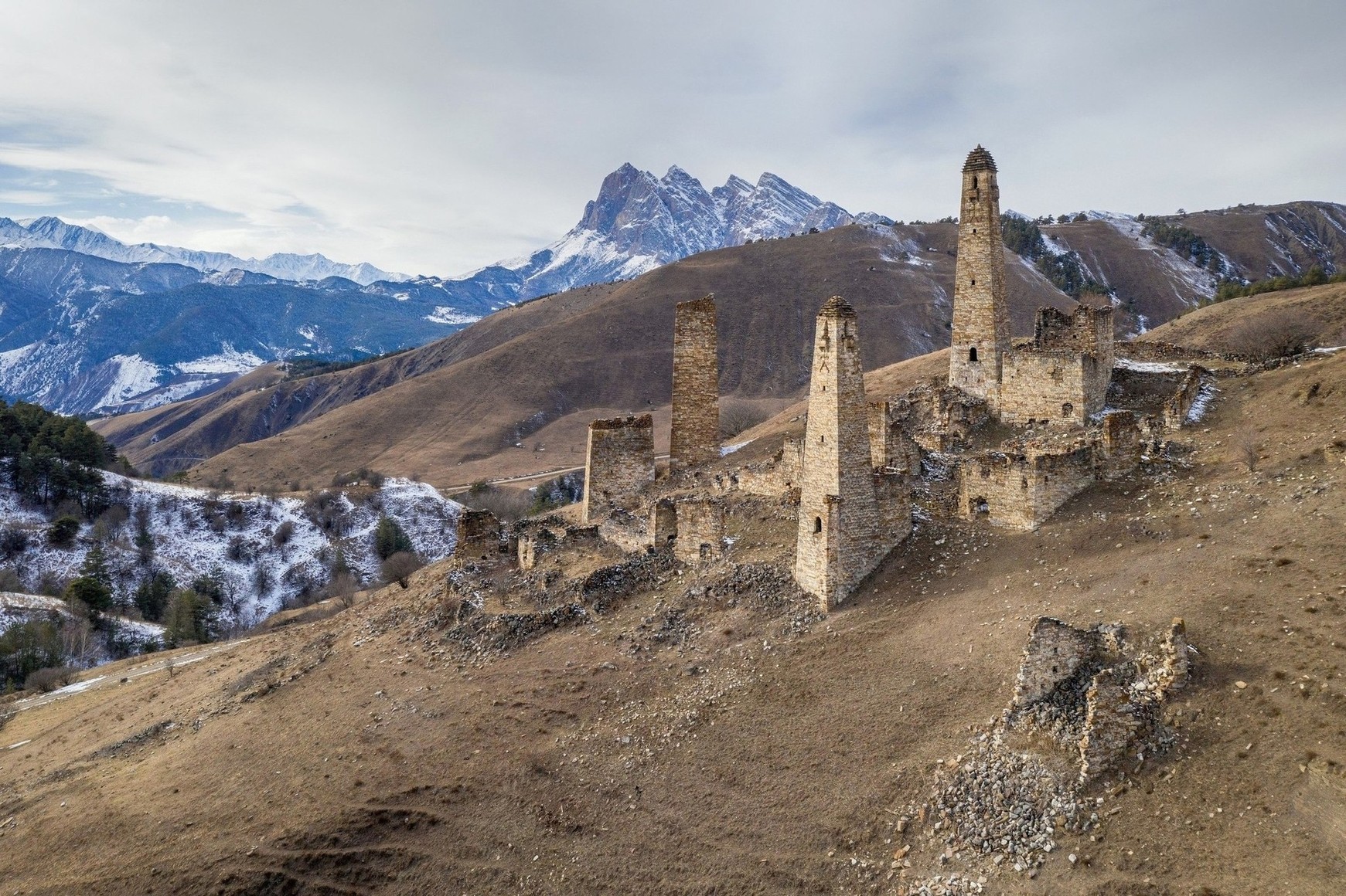 Путешествие пройдет по самому популярному маршруту через Дарьяльское ущелье. Пересекая Терек, мы направляемся в Джейрах и оказываемся у одного из крупнейших средневековых башенных комплексов. Ингушетия изобилует башнями, но именно в Эрзи их больше всех.